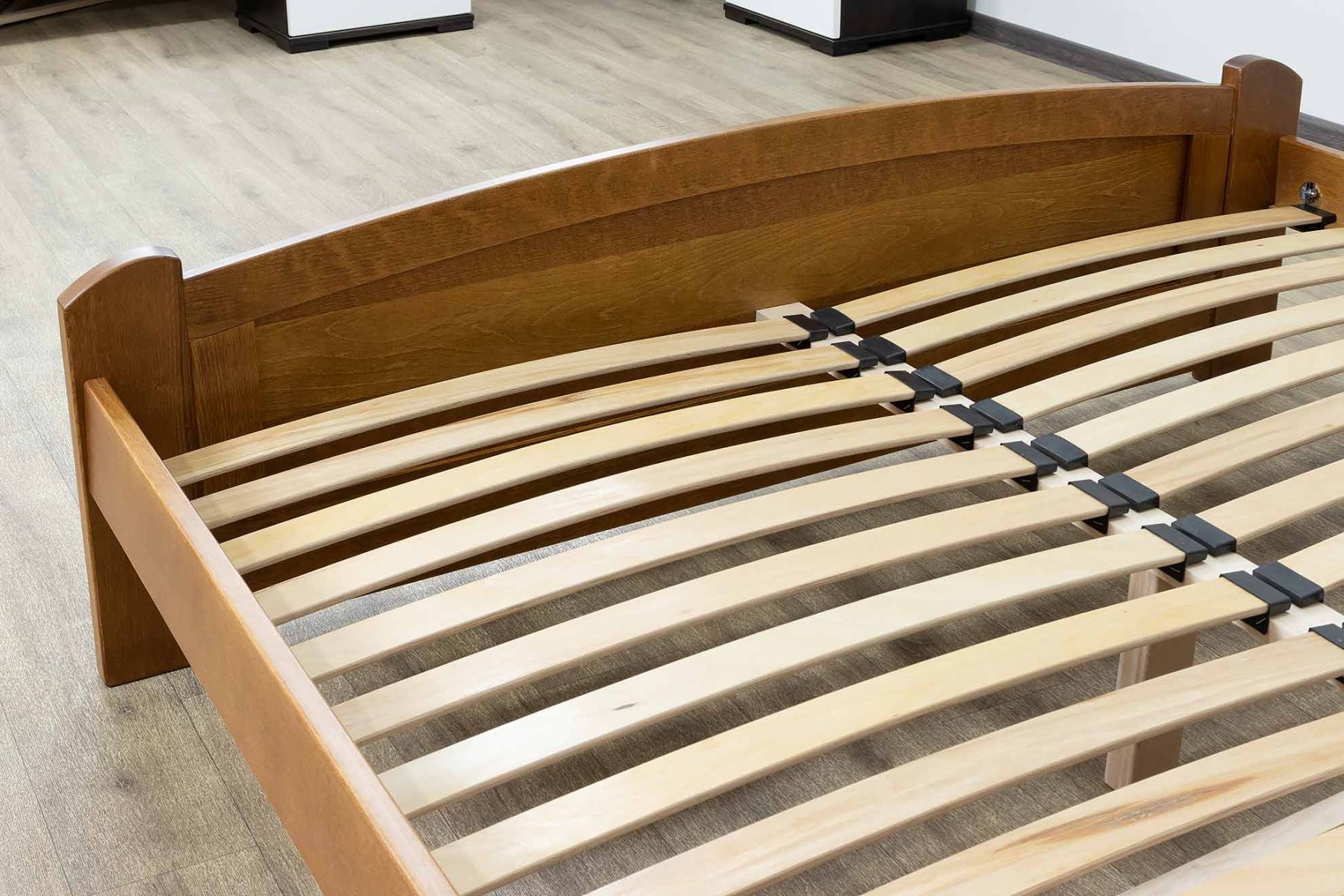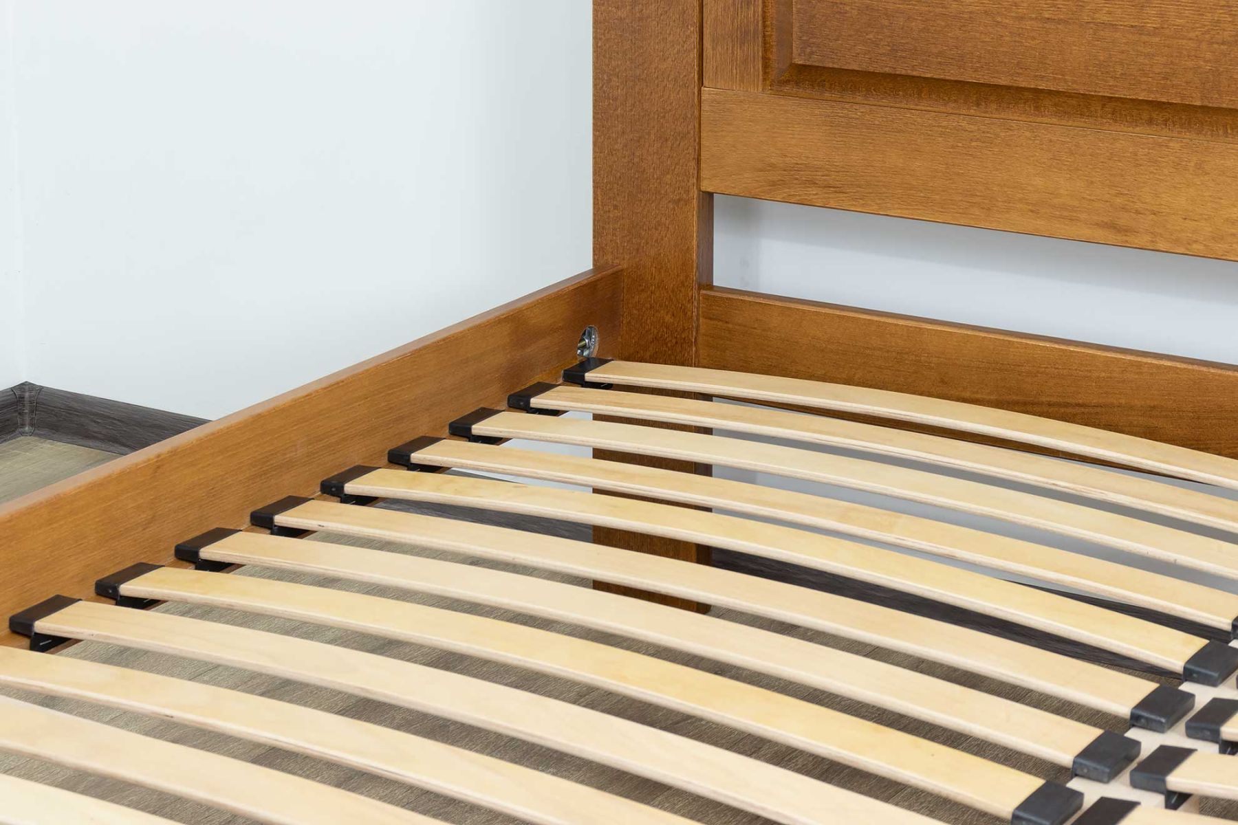 Ортопедичні ламелі для ідеального сну: Забудьте про невідповідність матрацу - ортопедичні ламелі забезпечують оптимальну підтримку для вашої спини. Завдяки їм, ліжко витримує понад 120 кг тиску на спальне місце, забезпечуючи довговічність та комфорт.