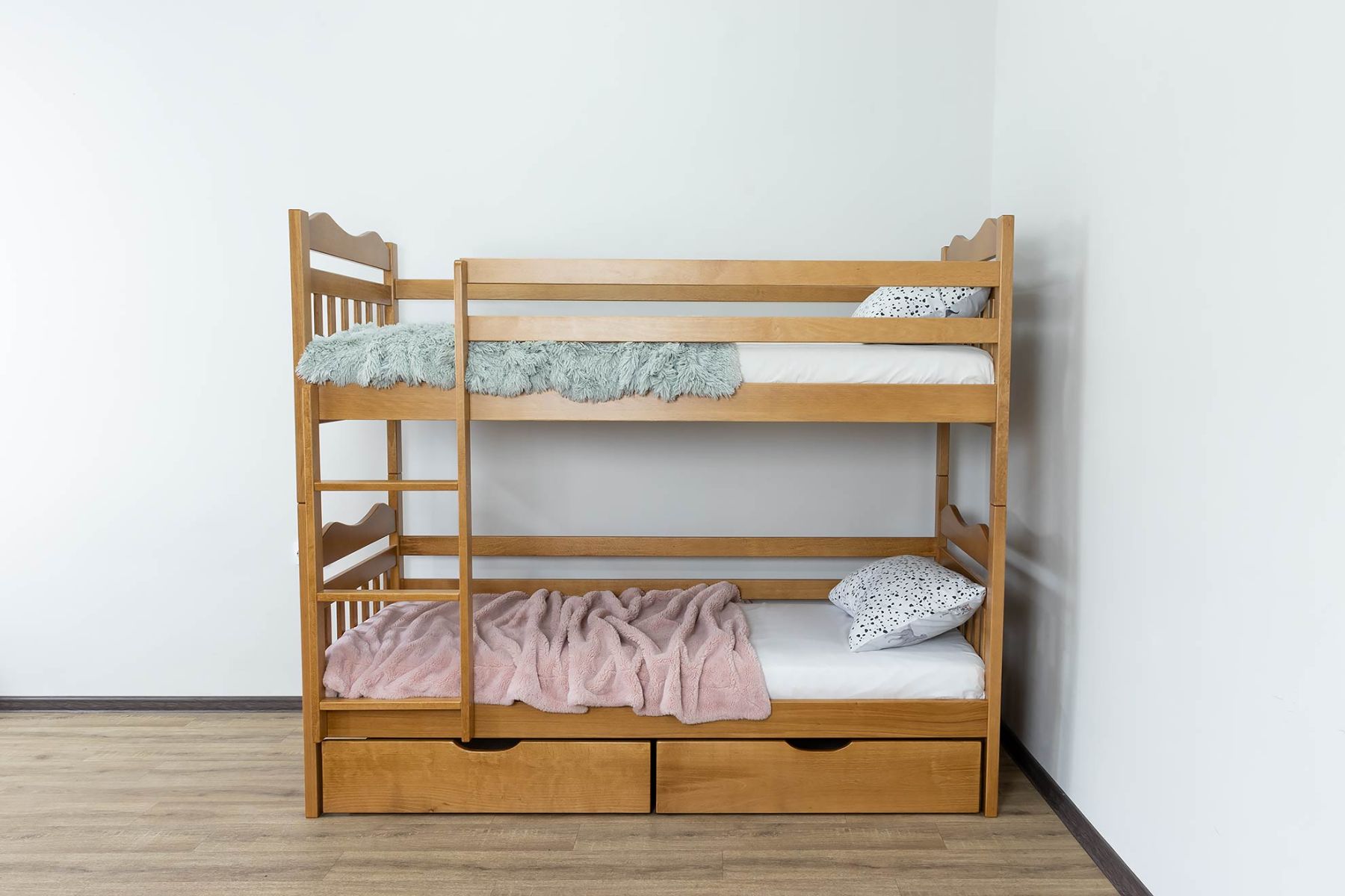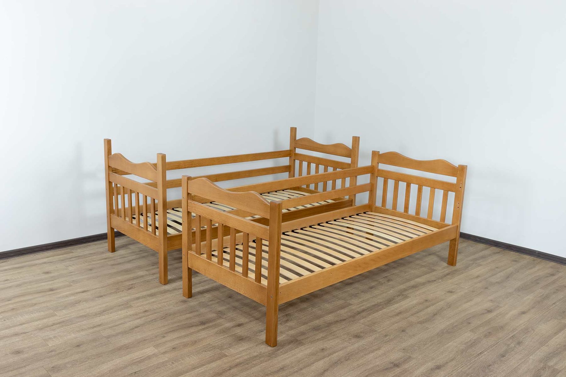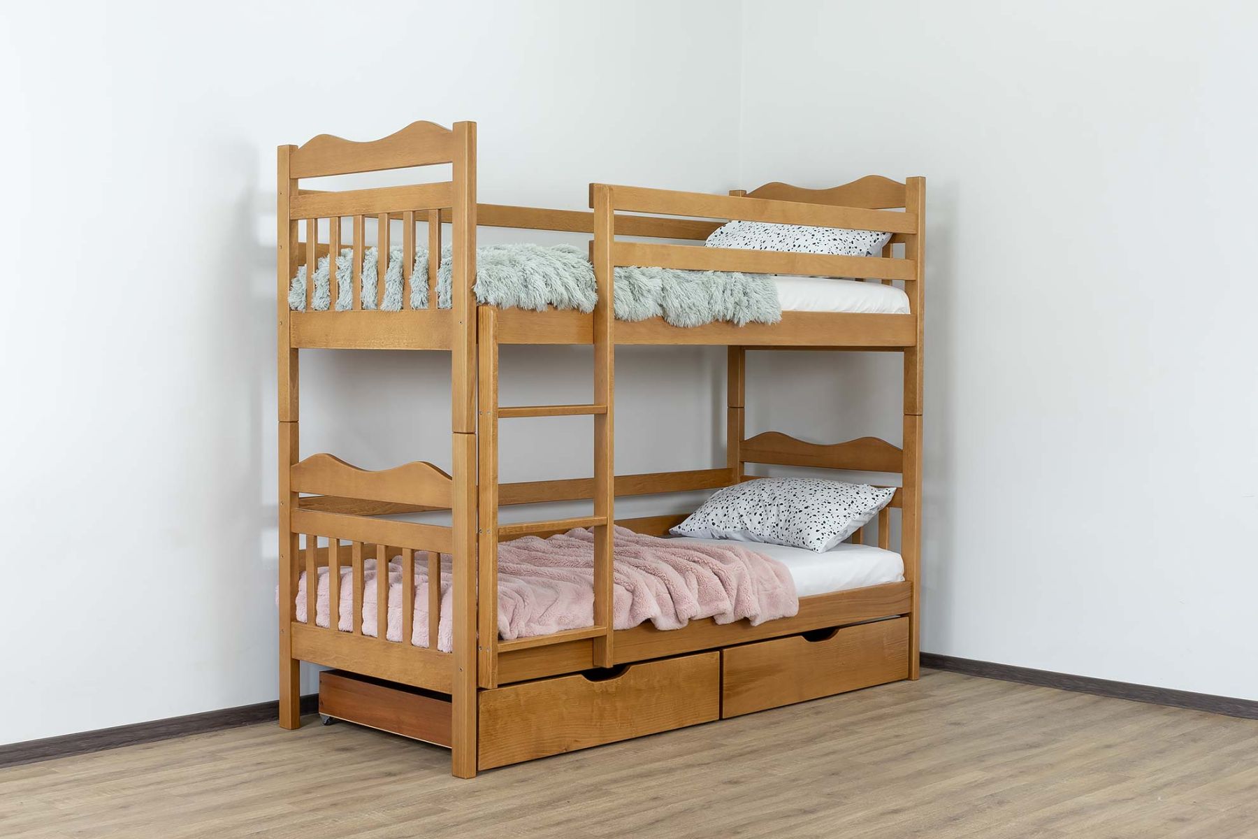 Додаткові елементи: Розширте функціональність з передніми бортами безпеки та шухлядами, обираючи матеріали: бук та фанера чи комбіновані (бук, ХДФ, ДСП).