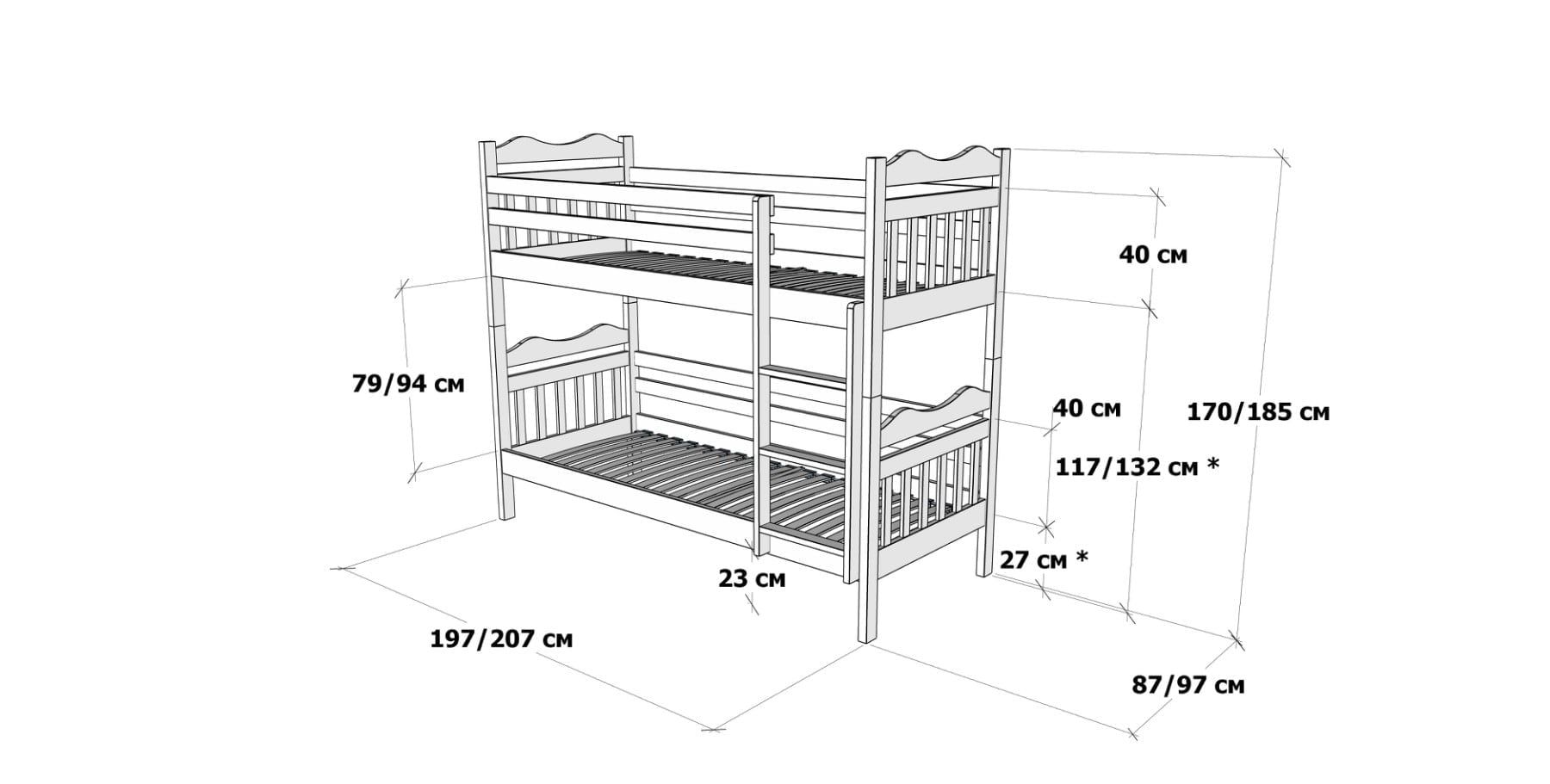 - Габарити конструкції ідеально підходять для дитячої кімнати, забезпечуючи комфортне розташування.